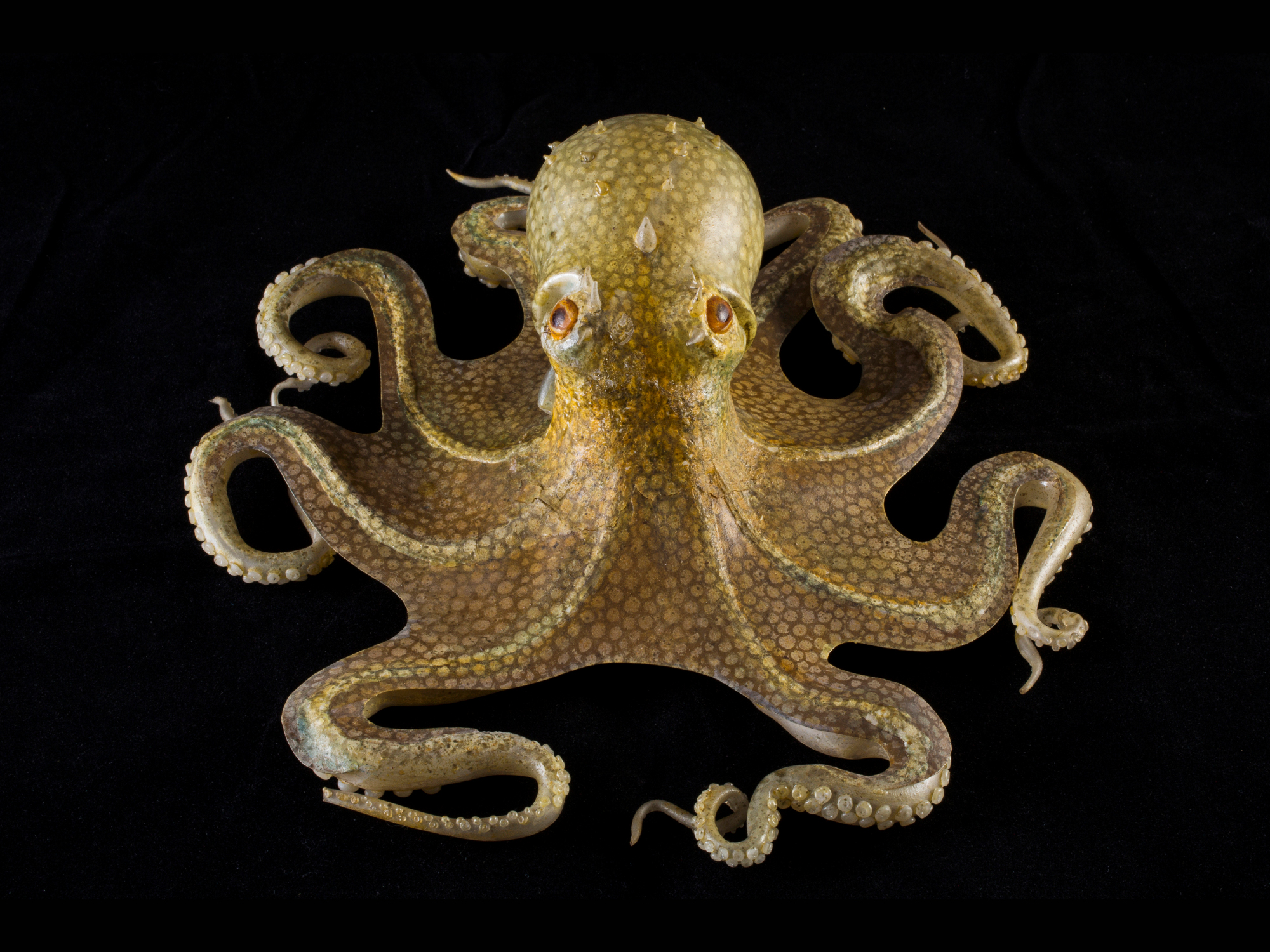 This common octopus (Octopus vulgaris) is from Cornell’s extensive collection of glass marine models fashioned by Leopold and Rudolf Blaschka. Photo by Gary Hodges