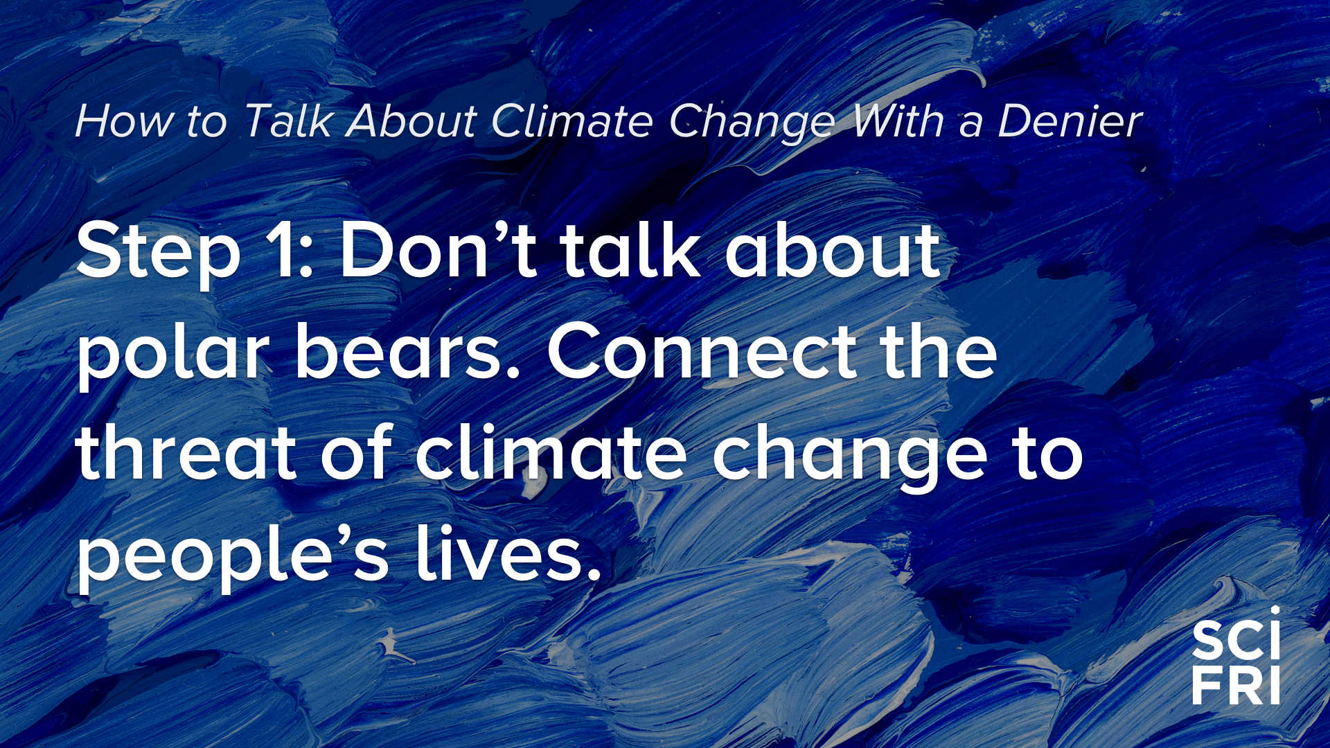 Luckily, we recently invited a panel of climate scientists, a psychologist, and a couple callers to join us on Science Friday and share advice on how to have a conversation about climate change that could change a skeptic’s mind. Here are their tips: