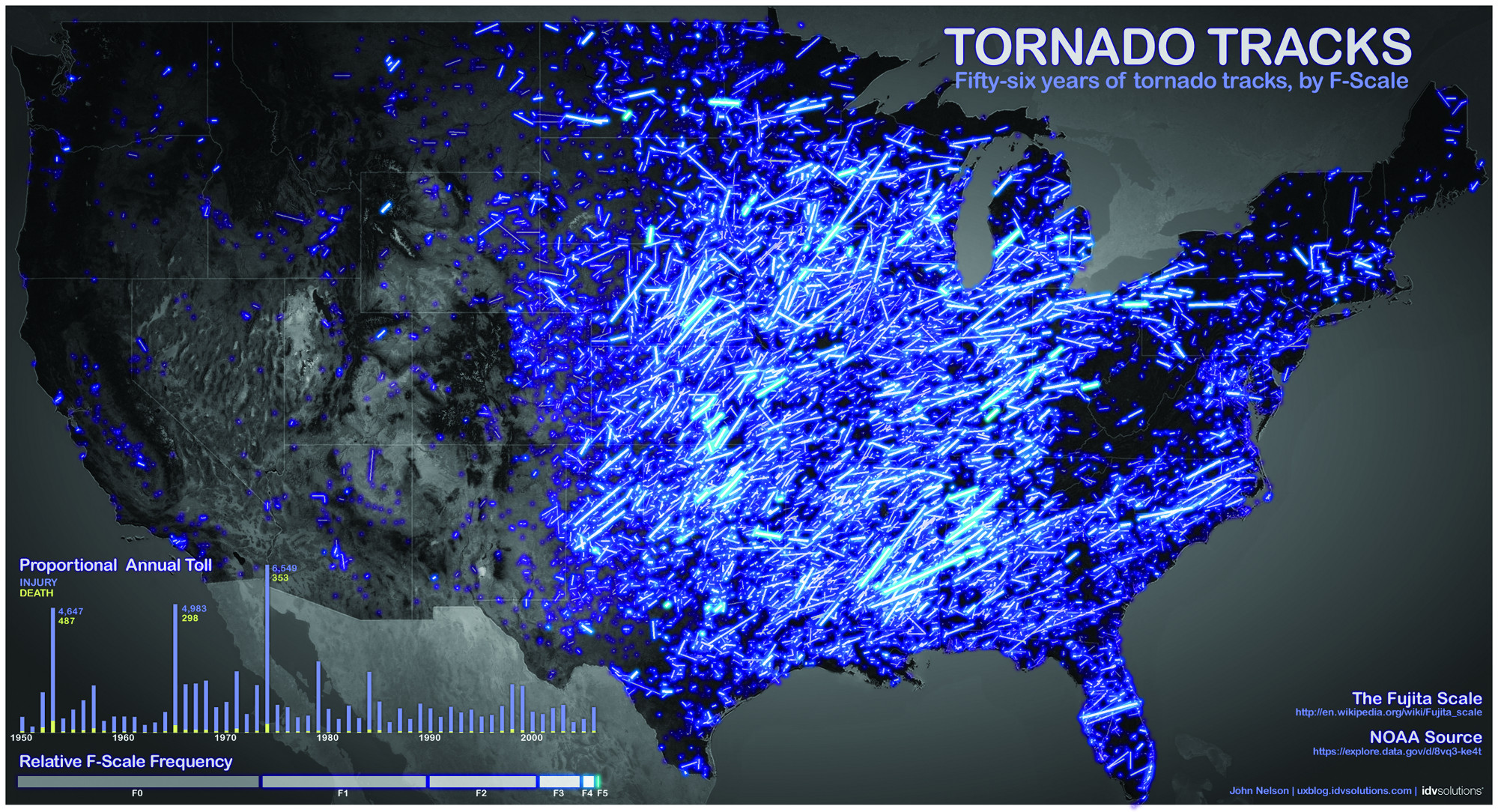 Tornado Tracks, by John Nelson, cartographer at IDV Solutions in Lansing, Michigan