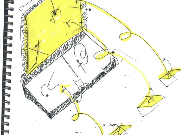 Elizabeth Streb’s sketch for the dance “Rotate.” “Rotate” uses the Whizzing Gizmo, a 12-foot diameter aluminum and steel wheel that the dancers enter elegantly and slowly—at first. Courtesy STREB Extreme Action Company
