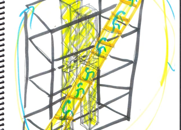 Finally, Elizabeth says she develops many of her dances on paper first. Check out the slideshow below for a sneak peek at how STREB Company’s “big hardware” comes together.