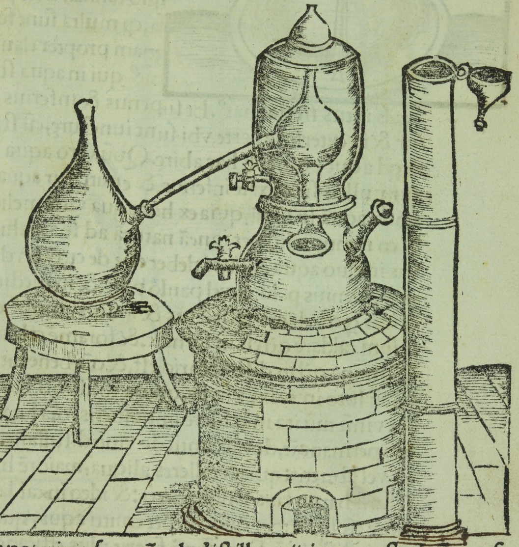 Other evidence points to a rise in distillation in the Middle East. The earliest distillation apparatus from that region, says McGovern, is quite different from the one found in China—it featured a flask with a long, downward-pointing neck on top of a heat source. The Egyptian alchemist Zosimos of Panopolis, who lived around 300 CE and wrote about Maria the Jewess, is said to have created the first accurate illustrations of the device. It’s not clear whether Zosimos or Maria—or both—was directly responsible for this version of the apparatus, but it was this iteration that snaked up into Europe and was passed along by medieval Arab scholars, explains McGovern. Exactly when that transfer occurred is, to the best of our knowledge, unclear.