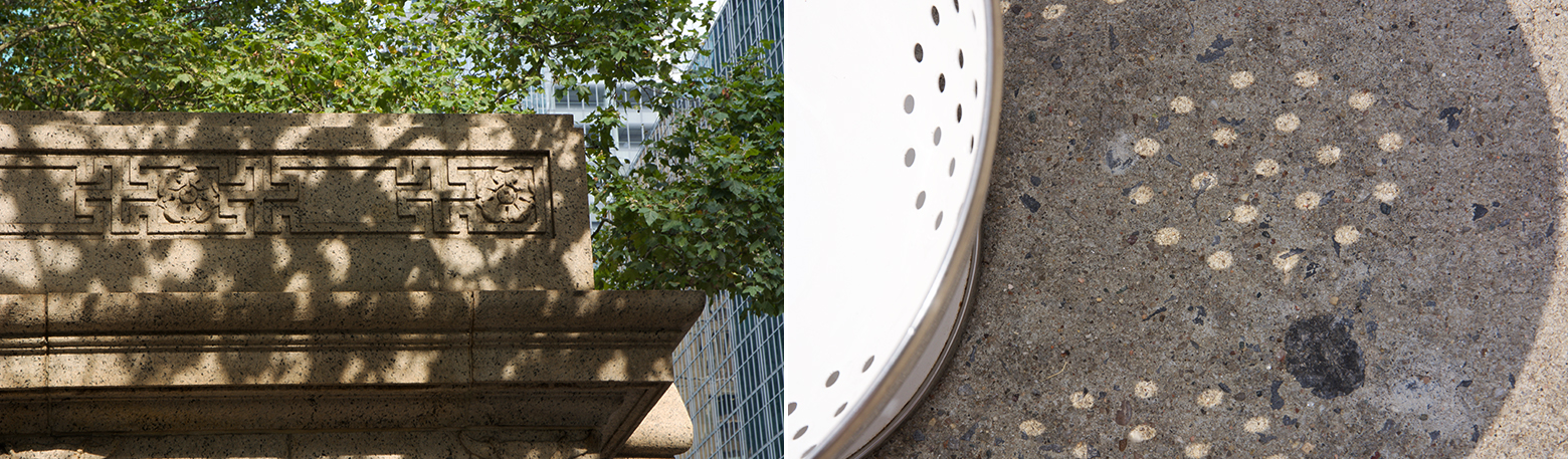 Cualquier objeto con pequeños agujeros funcionará de forma similar a un proyector casero o proyector estenopeico. ¿Ves la luz solar pasar entre esas hojas en la fotografía o los agujeros en el colador? Durante el eclipse, estos objetos funcionarán como proyectores; solamente busca un lugar en el que la luz solar pase por ellos y mira cómo la luz cambia* durante el eclipse.
