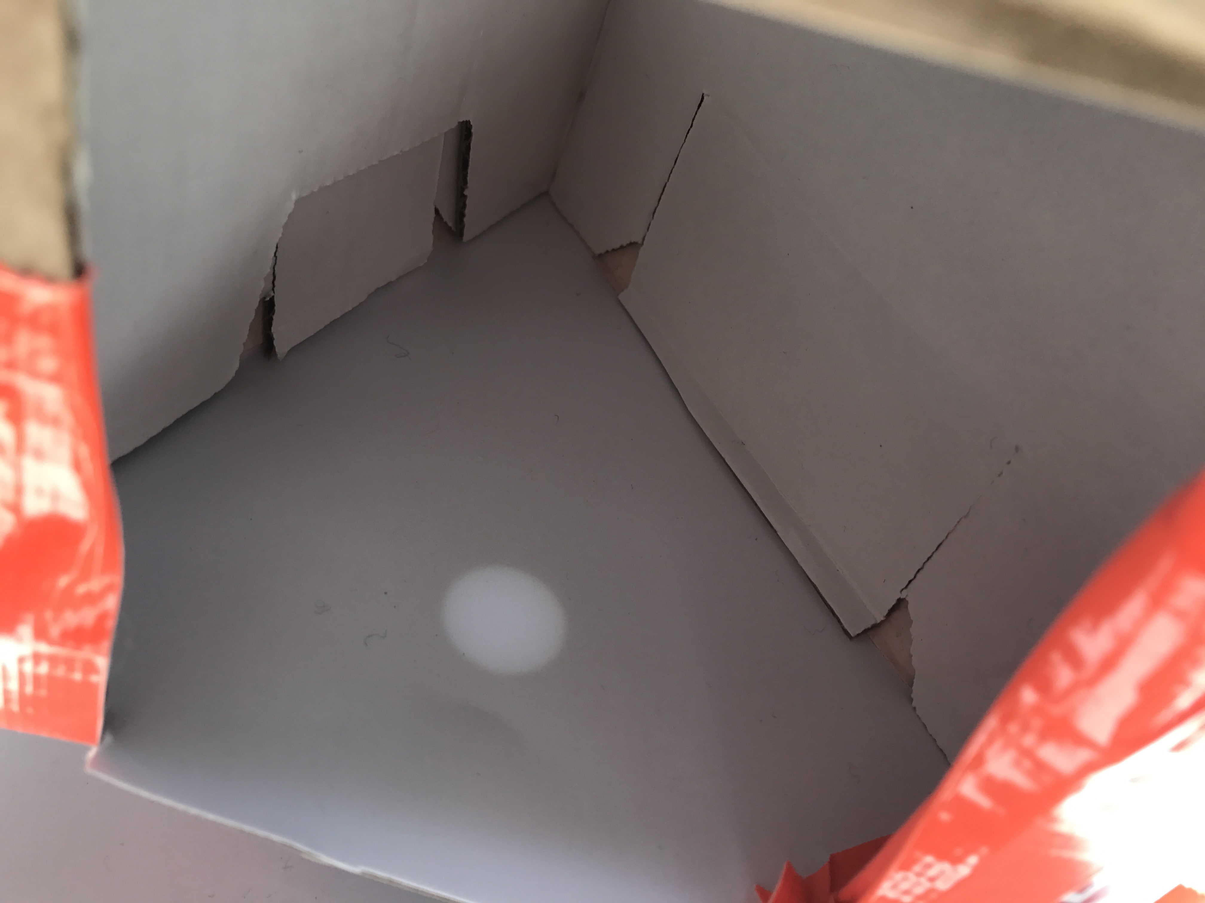 - Cubre el interior de la caja, en la cara marcada como “adelante”, con papel blanco. Este será tu visor.