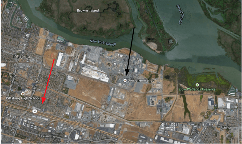 California’s Environmental Protection Agency (CalEPA) lists the pollution burden for the neighborhood closest to the Dow Chemical Plant at 90-95%. This means that the pollution burden in this census tract is worse than 90-95% of the census tracts in all of California.