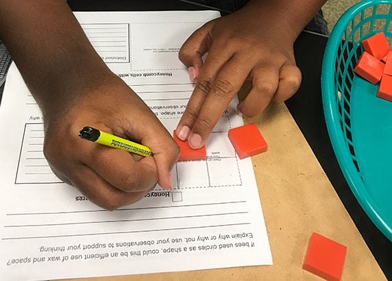 Betsy from Kansas said:I loved how the students were able to use the evidence from each of the investigations to support the claim as to why honeybees use the hexagon. I also loved the questions that students were having based on the investigations. I had one student ask if wasps were similar to the honeybee in how they love and create their homes.