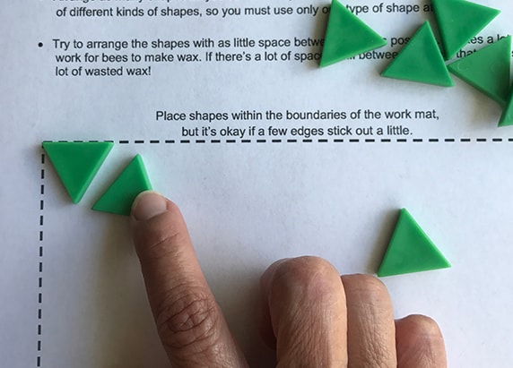 You will conduct four investigations into how different types of shapes might affect the amount of wax and space needed to build cells in a honeycomb. Investigations should be conducted in sequential order, because each one builds upon previous investigations.