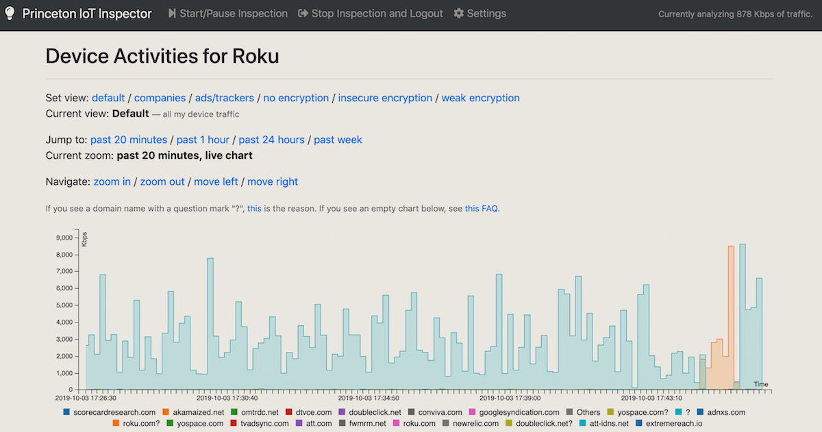 IRA FLATOW: I’m Ira Flatow. This is Science Friday from WNYC Studios. Talking about your internet of things– in the few minutes we have, I wanted to talk to you Nick, about a project out of Princeton called the internet of things inspector. It’s a piece of software that I actually installed last night to watch it. It pings to all your devices in your home. It keeps track of what they’re sending. And I used it on my Roku and I– on the website at Science Friday, [INAUDIBLE] you can see a 20 minute little piece of video I put up there that shows 20 minutes of usage. And how many things my Roku was talking to in just those 20 minutes was amazing.